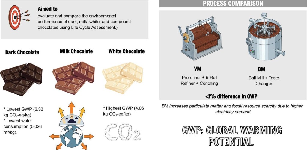Konar N, Fidan M, Atalar I, et al. Life cycle hotspots in chocolate production: Ingredient formulation, processing technologies, and pathways toward sustainable confectionery systems. Science of the Total Environment. 2026;108:18150.